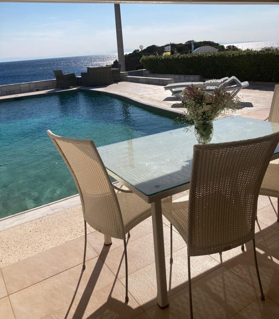 Περιλαμβανει μια μεγαλη σκεπαστη τραπεζαρια με bbq μεγαλη αποθηκη και ιδιωτικη πισινα 46τμ
